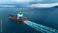 • large cargo container ship leaving a white wake as it sails towards a dramatic dark storm and heavy rain over the ocean. Concept of navigating supply chain challenges, maritime resilience