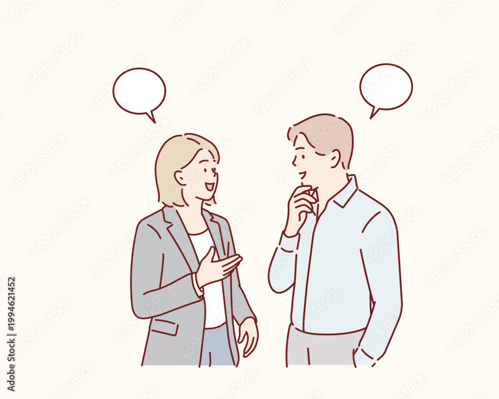Obrazy Niebo - Two Professional Coworkers Having a Serious Business Discussion Original vector illustration... #1994621452
