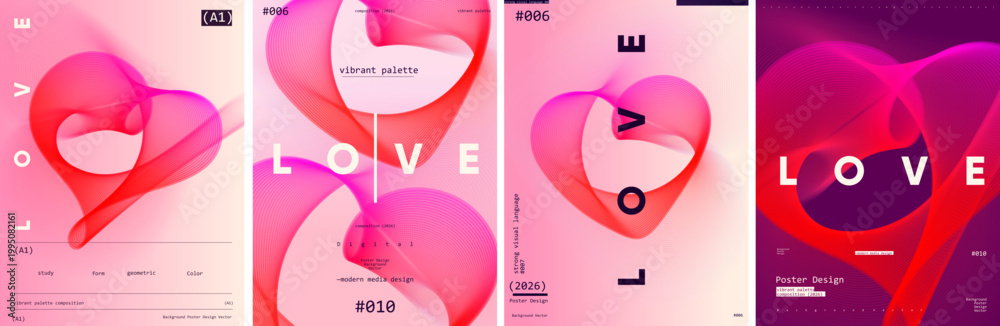 • Colorful abstract design featuring flowing lines forming a heart shape with the word 'LOVE' prominently displayed. Perfect for modern posters and digital art projects.