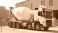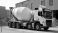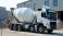 Obrazy Niebo - White concrete mixer truck parked outside industrial building. Large vehicle stands near piles of... #1997614615