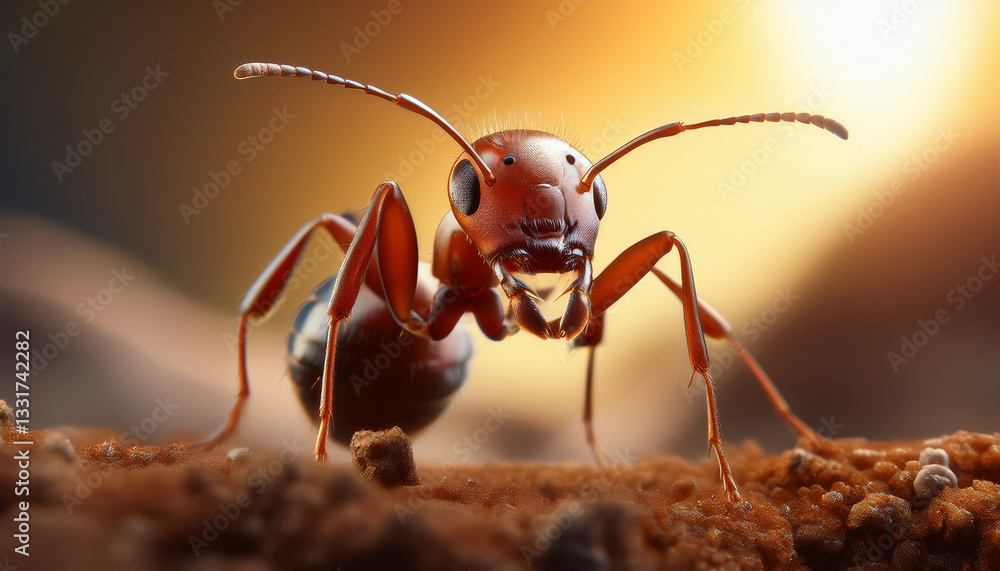 Obrazy Makro - Macro de una hormiga de frente con fondo cálido #1331742282