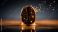 Obrazy Makro - Close up makro sebuah biji kopi panggang memercik ke dalam cairan dengan tetesan keemasan #1927761686