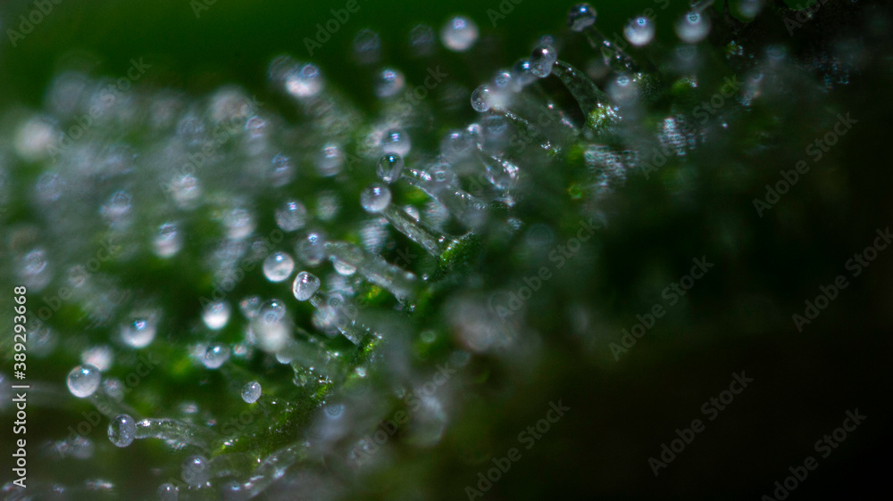 Obrazy Makro - Illegal indoor marijuana foot in advanced stage of flowering macro microscopic photo cannabis... #389293668