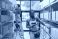 Obrazy Retro - Black employee checking cardboard boxes with goods on shelving units, working with inventory list... #1695210374