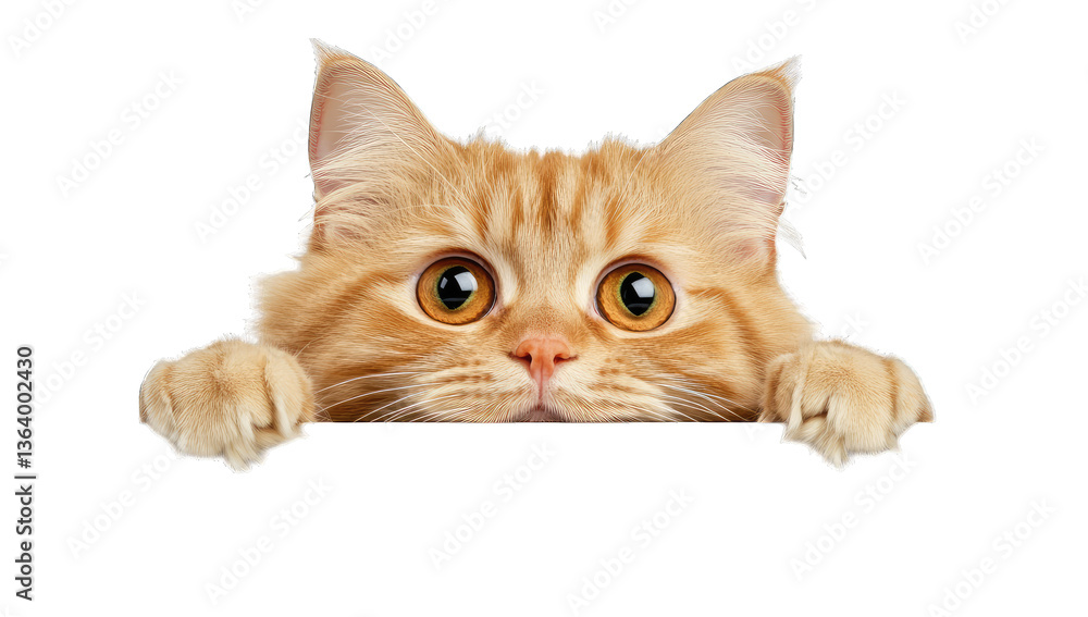 Obrazy Koty - a curious orange tabby cat peeks over a white surface showcasing #1364002430