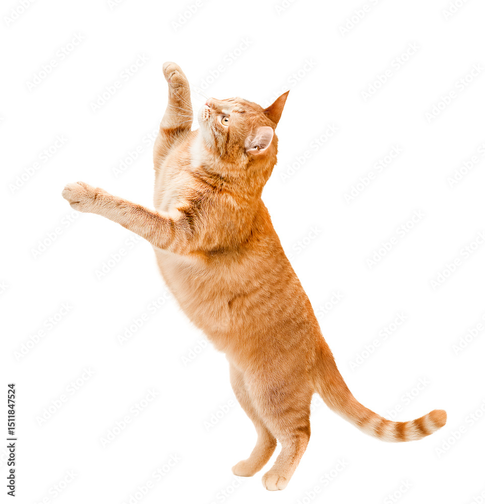 Obrazy Koty - ginger cat standing up isolated on transparent background. #1511847524