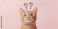 • Cute confused cat with big eyes and question marks above its head, minimalistic pastel background