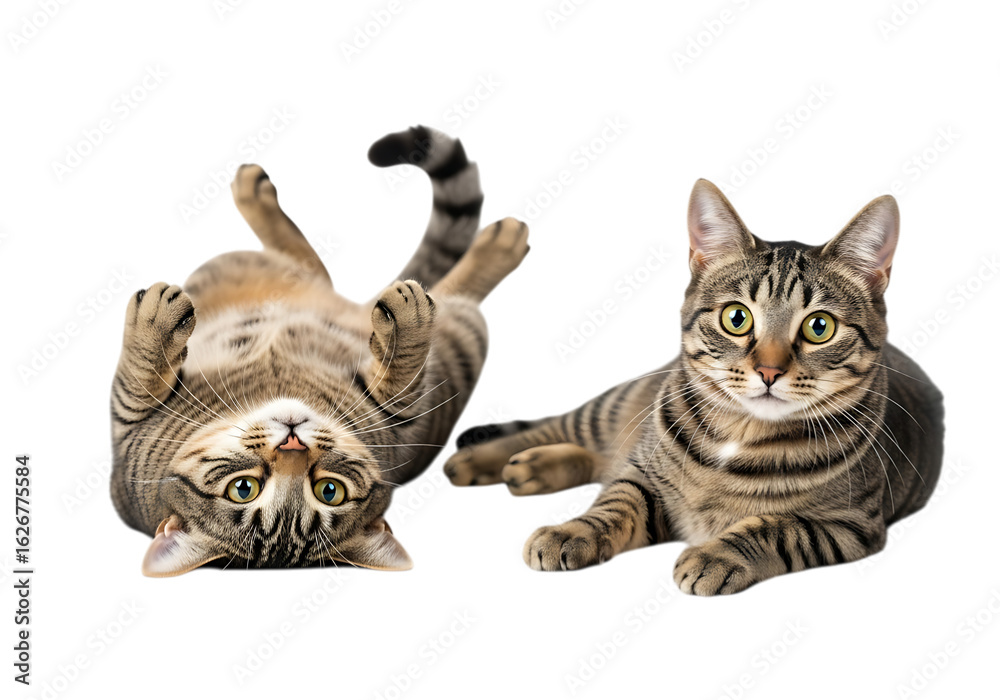 • Illustration of two tabby cats playing and relaxing together isolated on transparent background