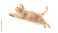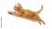 • A playful orange tabby cat leaps gracefully through the air against a pure white background. capturing a moment of joy and energy. perfect for pet-themed content or animal photography