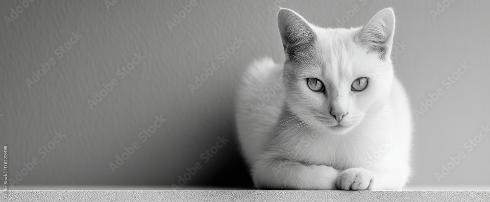 Obrazy Koty - White cat lying on surface on grey background #1762213498