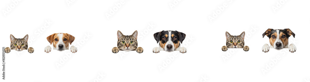 Obrazy Koty - Cute Cat and Dog PNG Collection in Oil Painting Effect – Peeking Over, on white background #1828155021