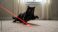 • A black cat playing with a red laser pointer on the floor