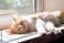 • fluffy cat sleeps on the windowsill illuminated by the morning rays of the sun. The life of a cat.