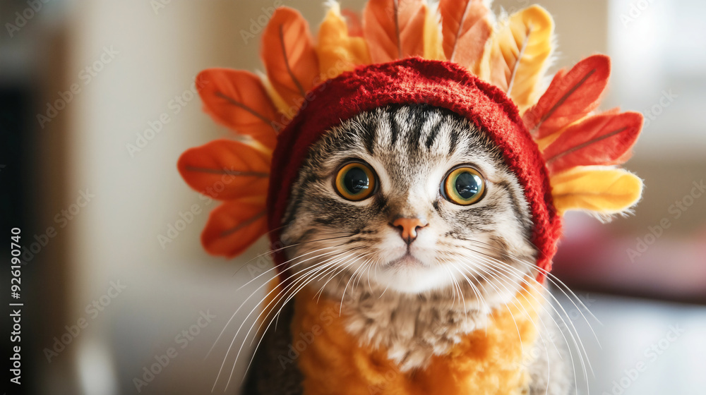 Obrazy Koty - A cute cat wearing an adorable turkey costume. Thanksgiving #926190740