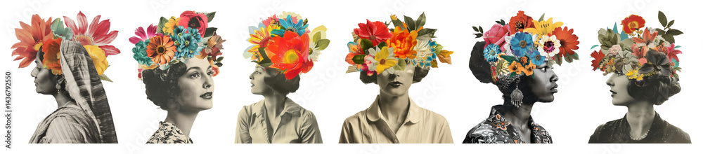 • PNG Vintage floral collage art, element set on transparent background