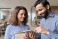 • Diverse friendly coworkers colleagues indian male manager and latin female employee talking in office using tablet device, having fun and laughing together discussing project.