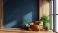 Obrazy Zwierzęta - Modern cozy living room interior design with brown leather armchair blue wall mockup and... #1993940549
