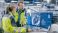• At the Factory: Male Mechanical Engineer Holds Component while Female Chief Engineer Work on Personal Computer, They Discuss Details of the 3D Engine Model Design.