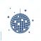 • Glittering disco ball icon. Shining mirror sphere for nightclub party. Dance music event discoball. Mirrorball in 70s or 80s discotheque style isolated on white background