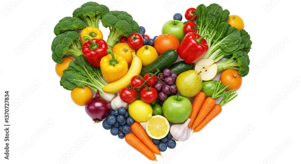 Naklejka Owoce - Isolated Heart Shape Made of Fruits and Vegetables #1370727834