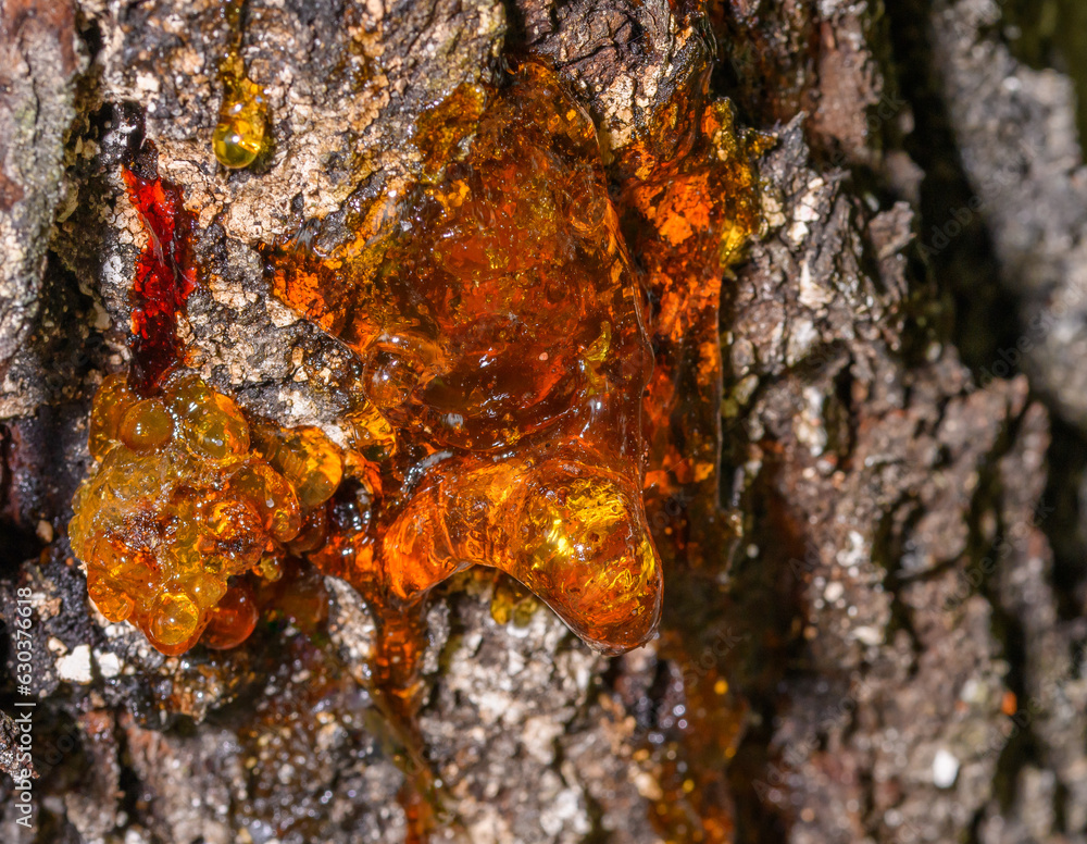 Naklejka na szafę - Sok drzewa, cieknąca żywica gumoza #630376618