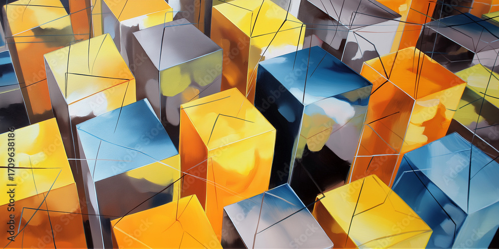 Plakat Abstrakcja - Abstrakcyjne, kolorowane prostopadłościany widziane z góry #1709638186