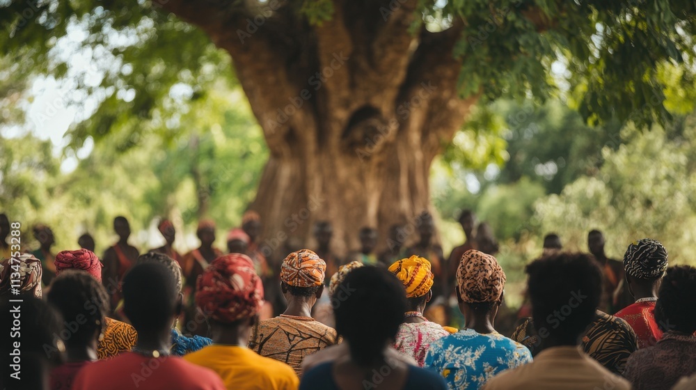 Plakat Afryka - African Village Gathering Under a Mighty Tree #1134753288
