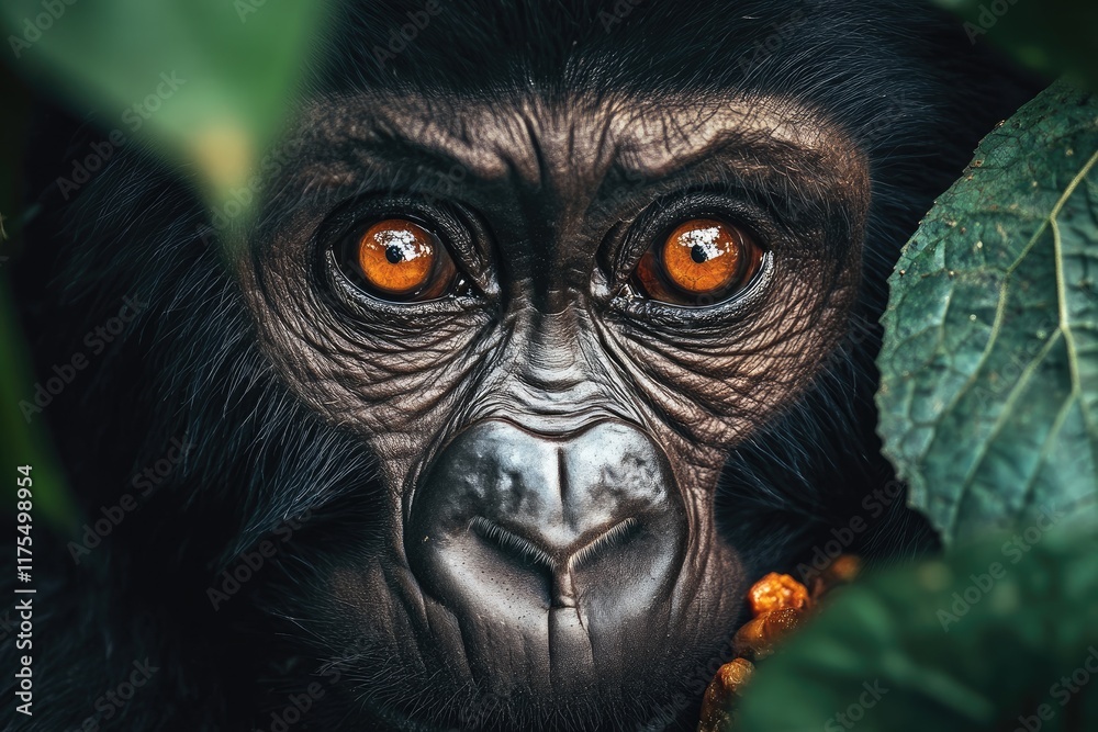 Plakat Afryka - Mountain Gorilla Gazing Through Lush Green Foliage #1175498954