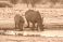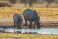 • White rhinoceros (Ceratotherium simum); mother with calf drinking from a well, Botswana