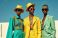 • Three stylish models showcase modern South African fashion. Vibrant colours, striking outfits featured. Wear chic contemporary apparel, accessories like hats, sunglasses. Models outdoors under bright