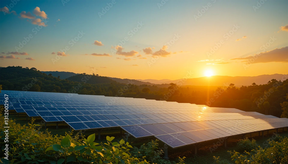 Plakat Afryka - Solar panels in African landscape at sunset #1312002967