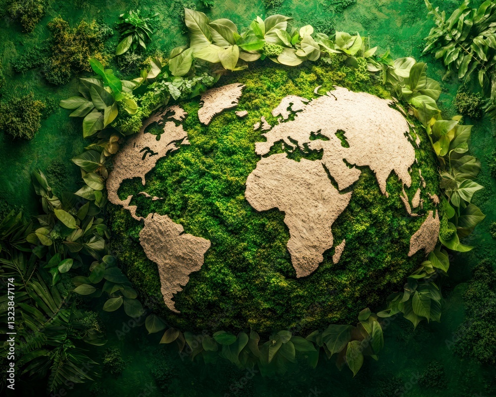 Plakat Afryka - Earth Globe Covered in Moss and Leaves Emphasizing Natural World #1323847174