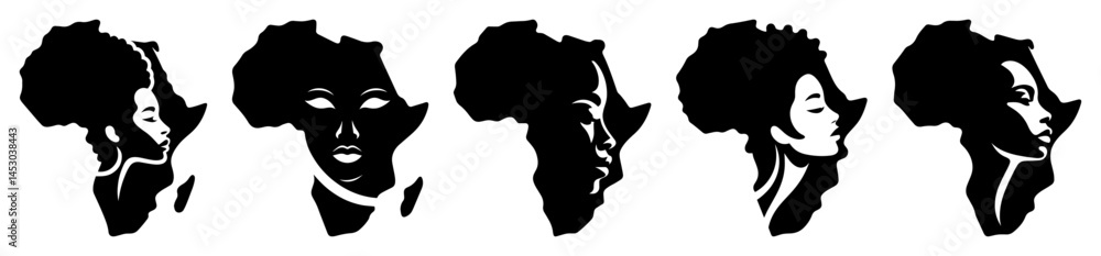 Plakat Afryka - african woman portraits in africa map silhouette set #1453038443