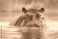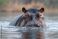 Plakat Afryka - A hippopotamus emerges from the water, its eyes focused intently on the viewer, creating a... #1479073411
