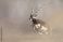 • Majestic blackbuck antelope in full stride, showcasing its unique horns and powerful physique against a backdrop of dusty plains.