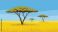 • Cartoon African Savannah Landscape with Acacia Trees and Golden Grass Illustration