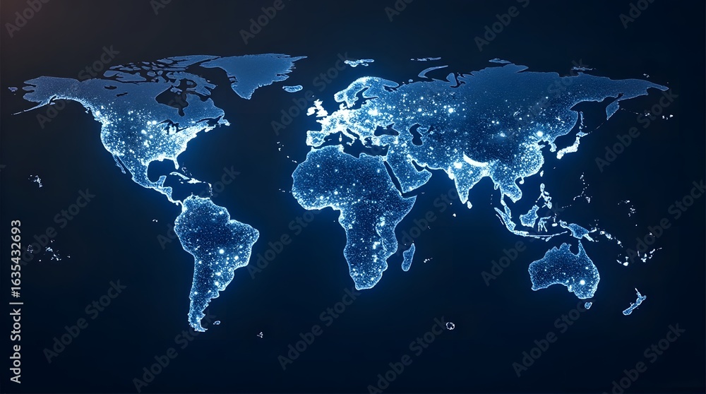 Plakat Afryka - Illuminated World Map at Night, Blue Light, Global View. #1635432693