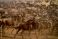 • Wildebeest Herd Charging Toward the Mara River During the Great Migration, Masai Mara