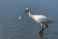 • African spoonbill (Platalea alba) flying and fishing at Sunset Dam in Kruger National Park in South Africa