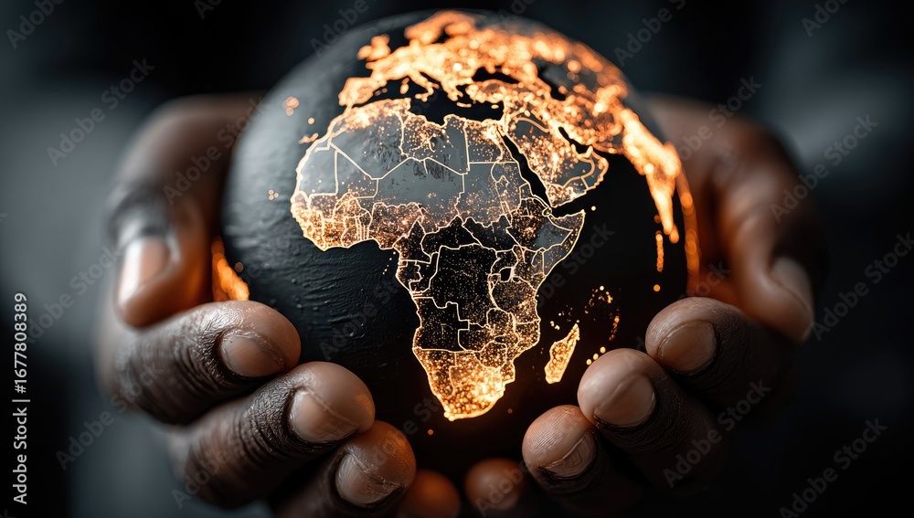 Plakat Afryka - Earth, held gently in hands, glowing African continent #1677808389