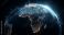 • A futuristic view of Earth from space shows a glowing network connecting cities across Africa and Europe at night symbolizing global data transmission and interconnectedness