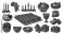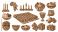 • Arrangement of kwanzaa elements including candles, fruit bowls, gifts, and african continent design