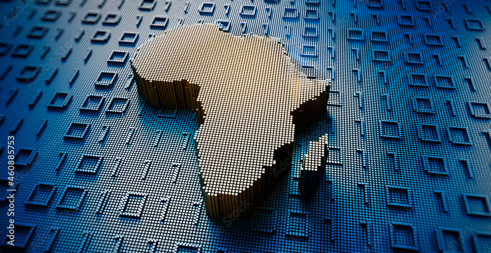 • African map in a digital raster micro structure - 3D illustration