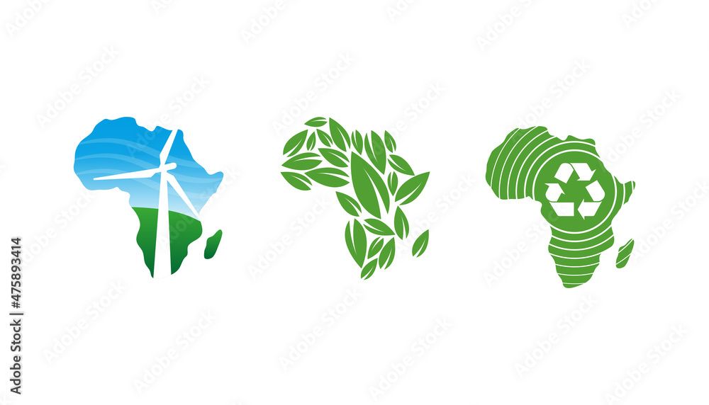 Plakat Afryka - Vector africa and windmill, leaf logo combination. Unique geography, continent and organic... #475893414