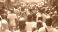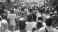 • A large group of people walk through a bustling street in an African city, creating a vibrant and colorful scene.