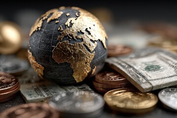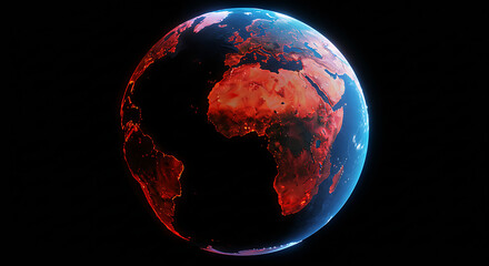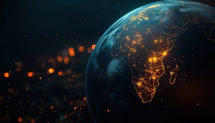 Plakat Digital globe centered on Africa with glowing data lines and network nodes, dark backgroundDopasuj i kup