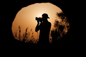Plakat Panorama silhouette Giraffe family and tree in africa with sunset.Tree silhouetted against a setting sun.Typical african sunset with acacia trees in Masai Mara, KenyaDopasuj i kup