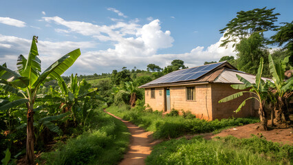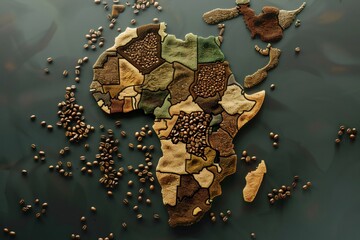 Plakat 3D view of Africa shape outlined by energy infrastructure, showcasing wind turbines and modern technology, symbolizing sustainable development and innovationDopasuj i kup