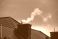 Plakat Architektura - Biały dym lecący z komina. #1227953806
