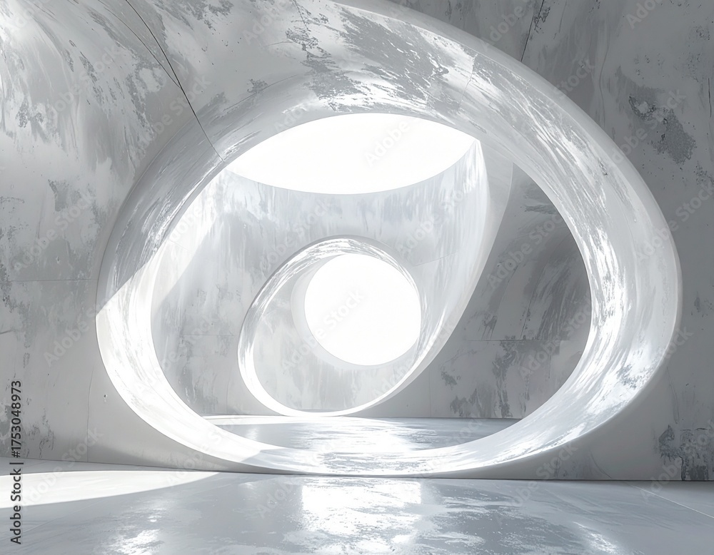 Plakat Architektura - Szare, betonowe wnętrze, korytarz z okrągłymi otworami. Nowoczesna architektura, zaokrąglone... #1753048973